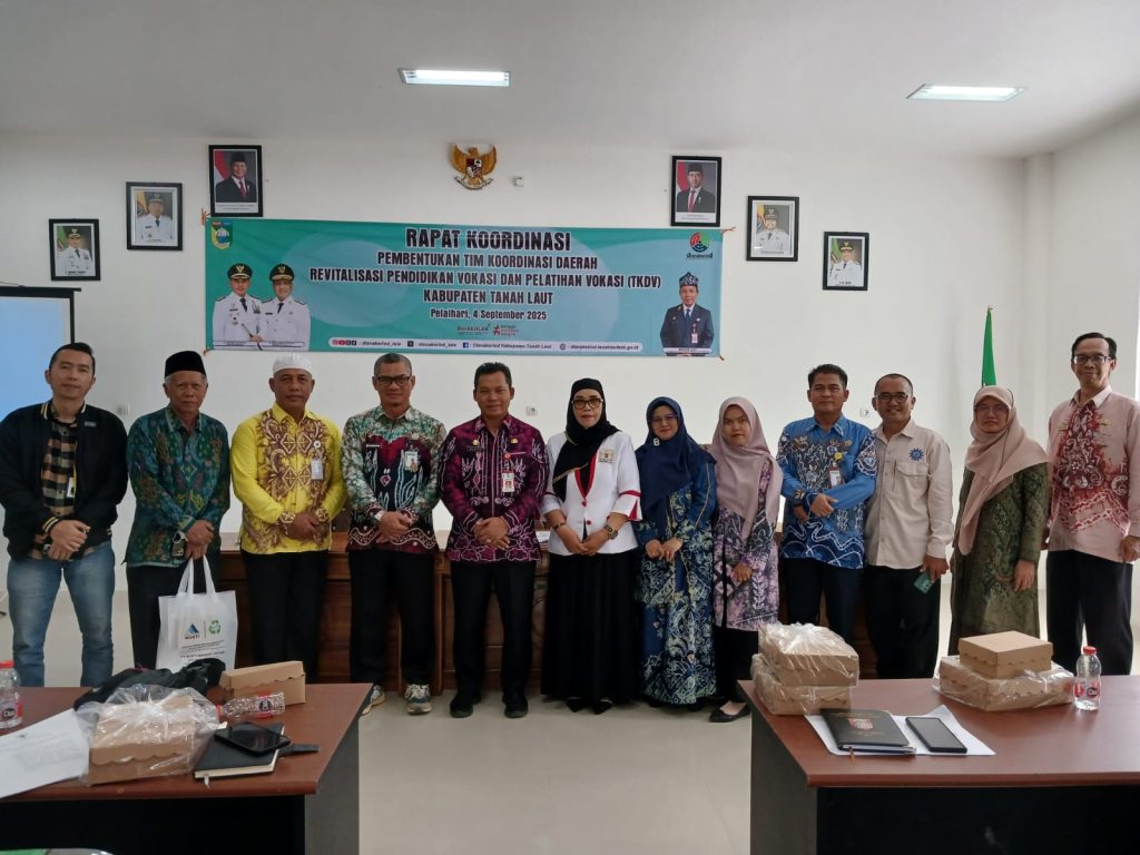 Dalam upaya memperkuat sinergi dan meningkatkan kualitas lulusan pendidikan vokasi yang siap memasuki dunia kerja, Pemerintah Kabupaten Tanah Laut melalui Dinas Tenaga Kerja dan Perindustrian Kabupaten Tanah Laut melaksanakan Rapat Koordinasi Pembentukan Tim Koordinasi Daerah Revitalisasi Pendidikan Vokasi dan Pelatihan Vokasi (TKDV) pada Rabu, 4 September 2025. Kegiatan ini dilaksanakan di kantor Dinas Tenaga Kerja dan Perindustrian Kabupaten Tanah Laut.